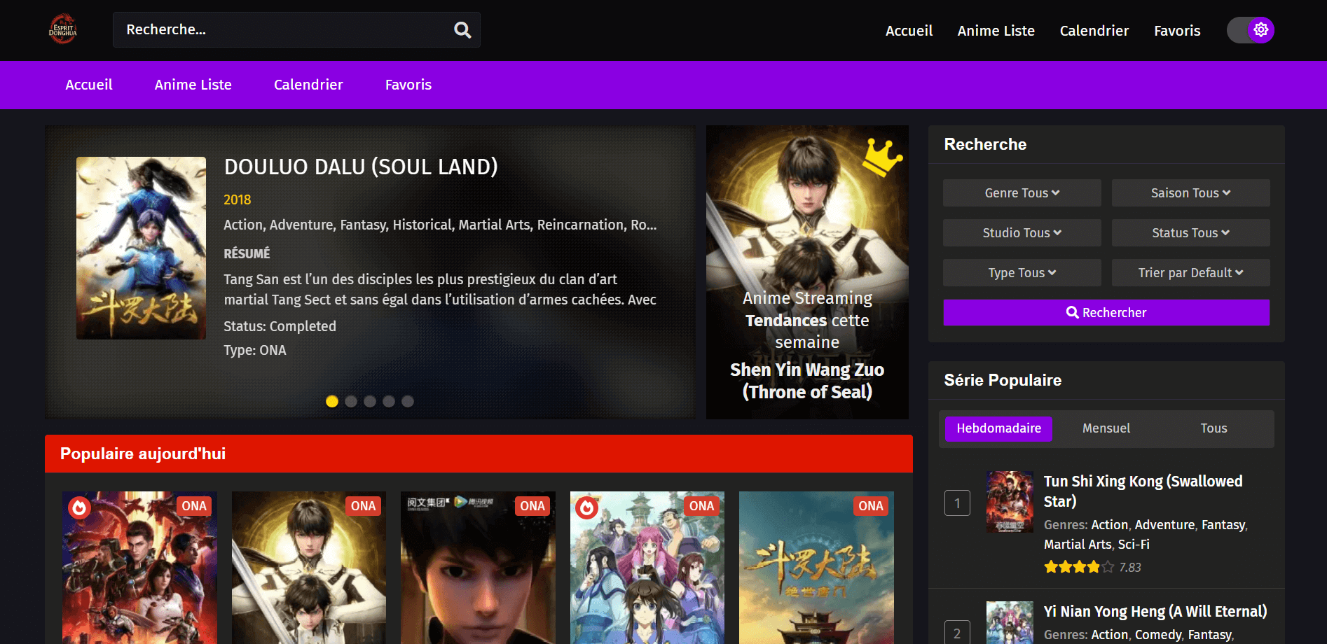 Vibe : Esprit-donghua.xyz sort du lot avec son focus sur les donghuas (animes chinois) tout en gardant un pied dans le classique japonais.